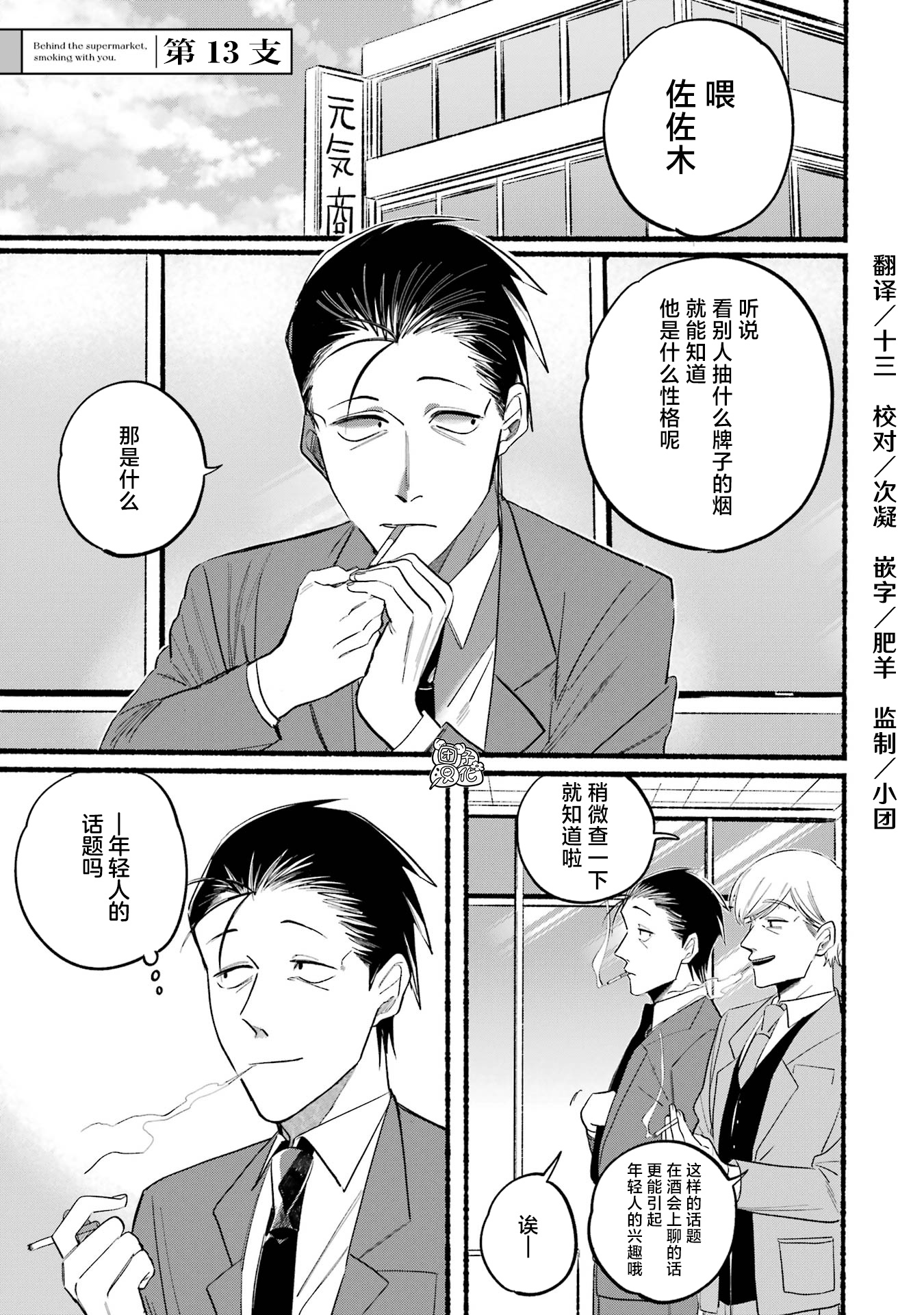 在超市后门吸烟的二人